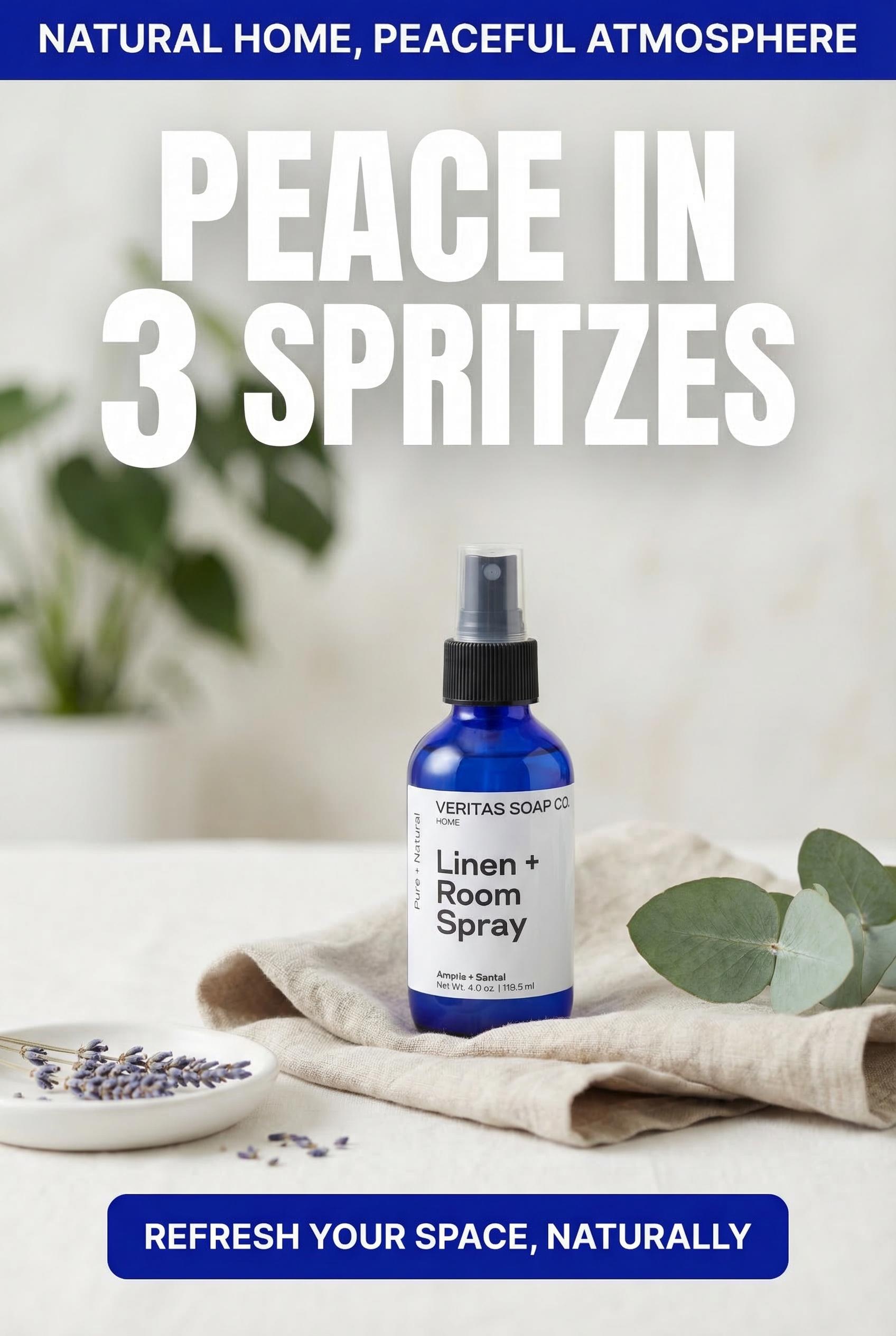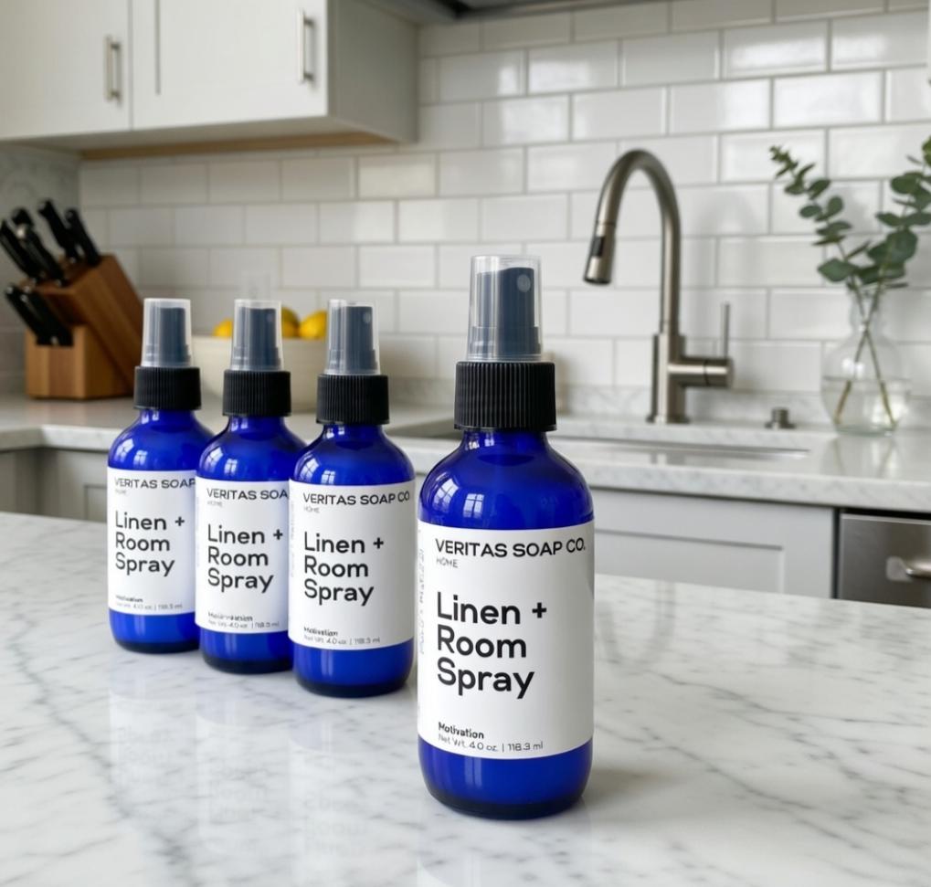 Refresh any space with Veritas Soap Co.'s NEW LINEN + ROOM SPRAY - Made with Organically sourced ingredients like organic sugarcane alcohol, organic + wild crafted witch hazel, pure essential oils and natural fragrance oils/resins. Long lasting scent that's safe for kids and those with sensitivities to synthetic fragrances, Veritas Soap Co.'s Organic Linen + Room Spray is sure to help create a more peaceful atmosphere, naturally.