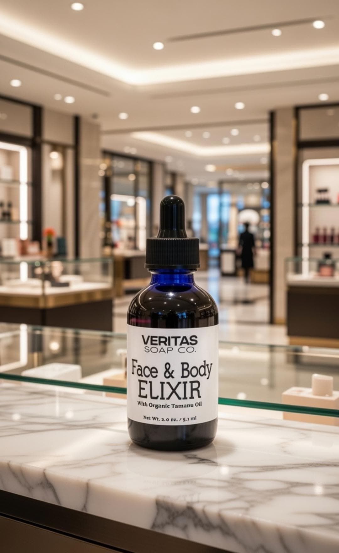 Use Veritas Soap Co.'s Face & Body Elixir and feel the transformation your skin will take on.