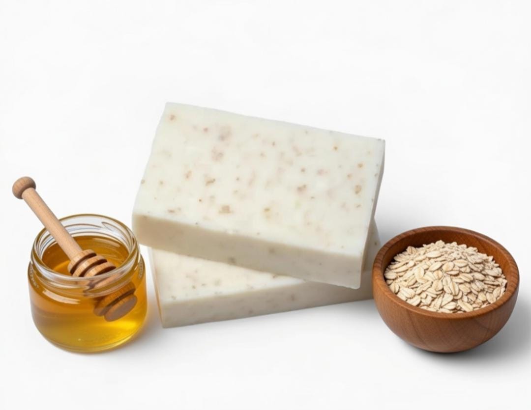 INGREDIENTS: Cocos Nucifera (Coconut Milk), Aqua/Water/Eau, Sodium Hydroxide, Sorbitol, Sorbitan Oleate, Organic Jojoba Oil, Pure Local Raw Honey, Organic Ground Oatmeal, Organic Powdered Goat's Milk, Bee Pollen Powder & Vit-E.