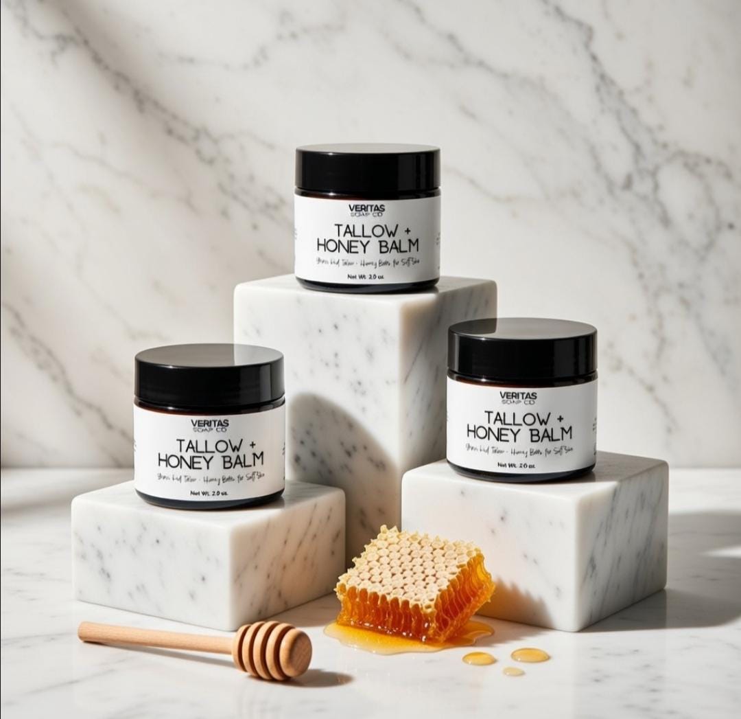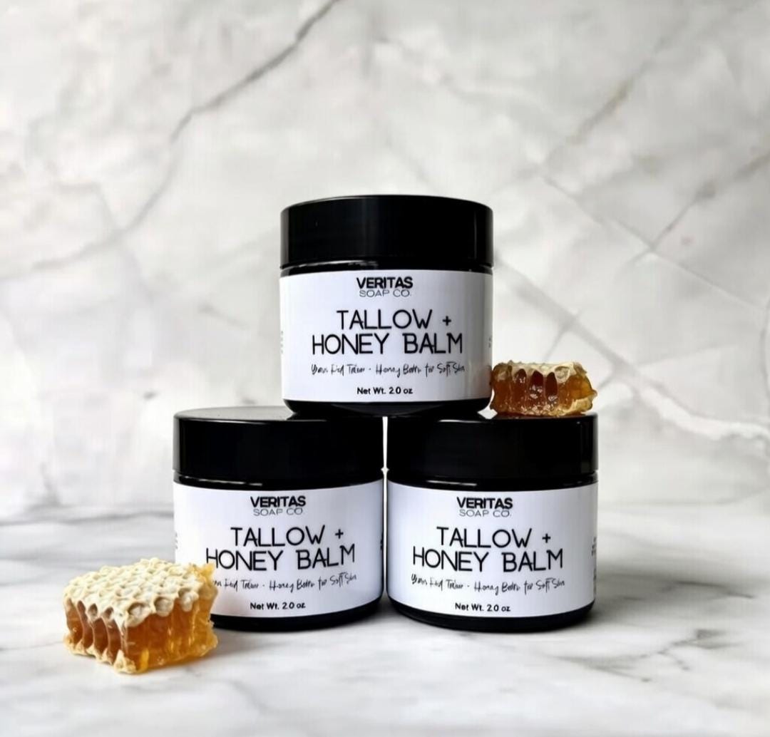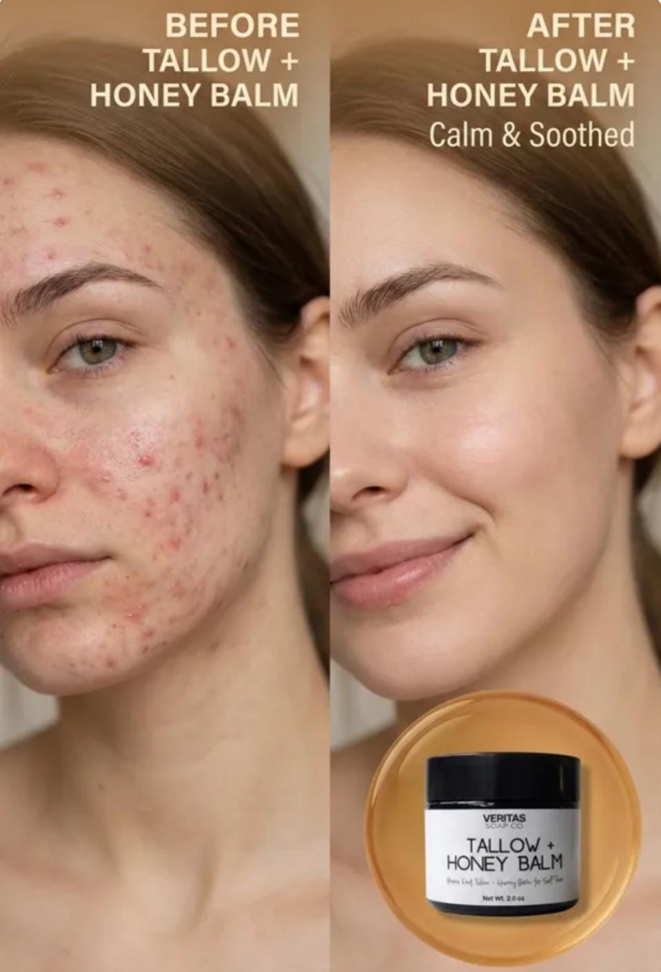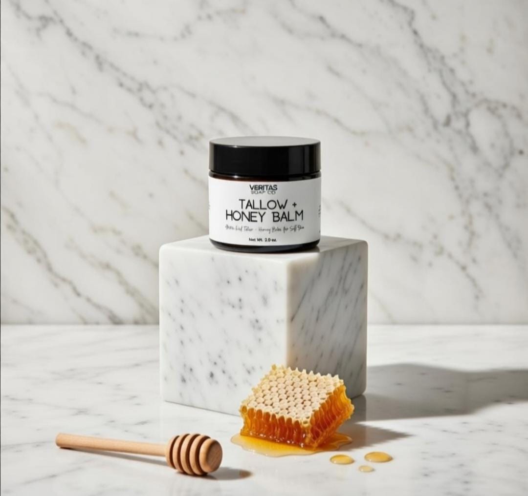 TALLOW + Honey BALM - Made with 100% Grass - Fed Beef Tallow + Raw Honey | Avocado Oil | Apricot Oil | Black Seed Oil