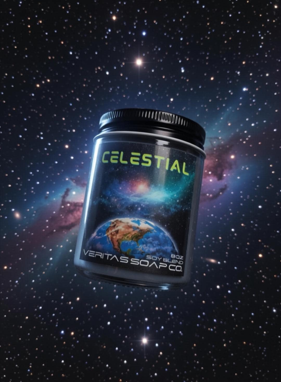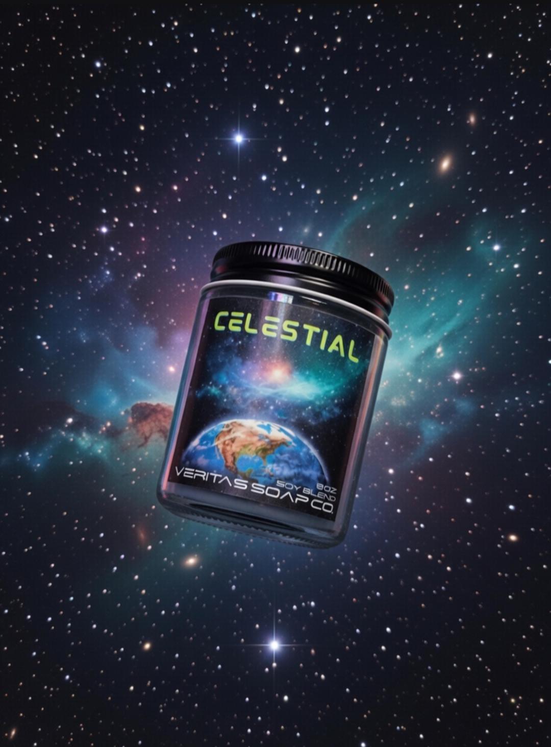 CELESTIAL - Shimmering Galaxy Candle: Wood Wick, Clean Scent, Biodegradable Glitter
