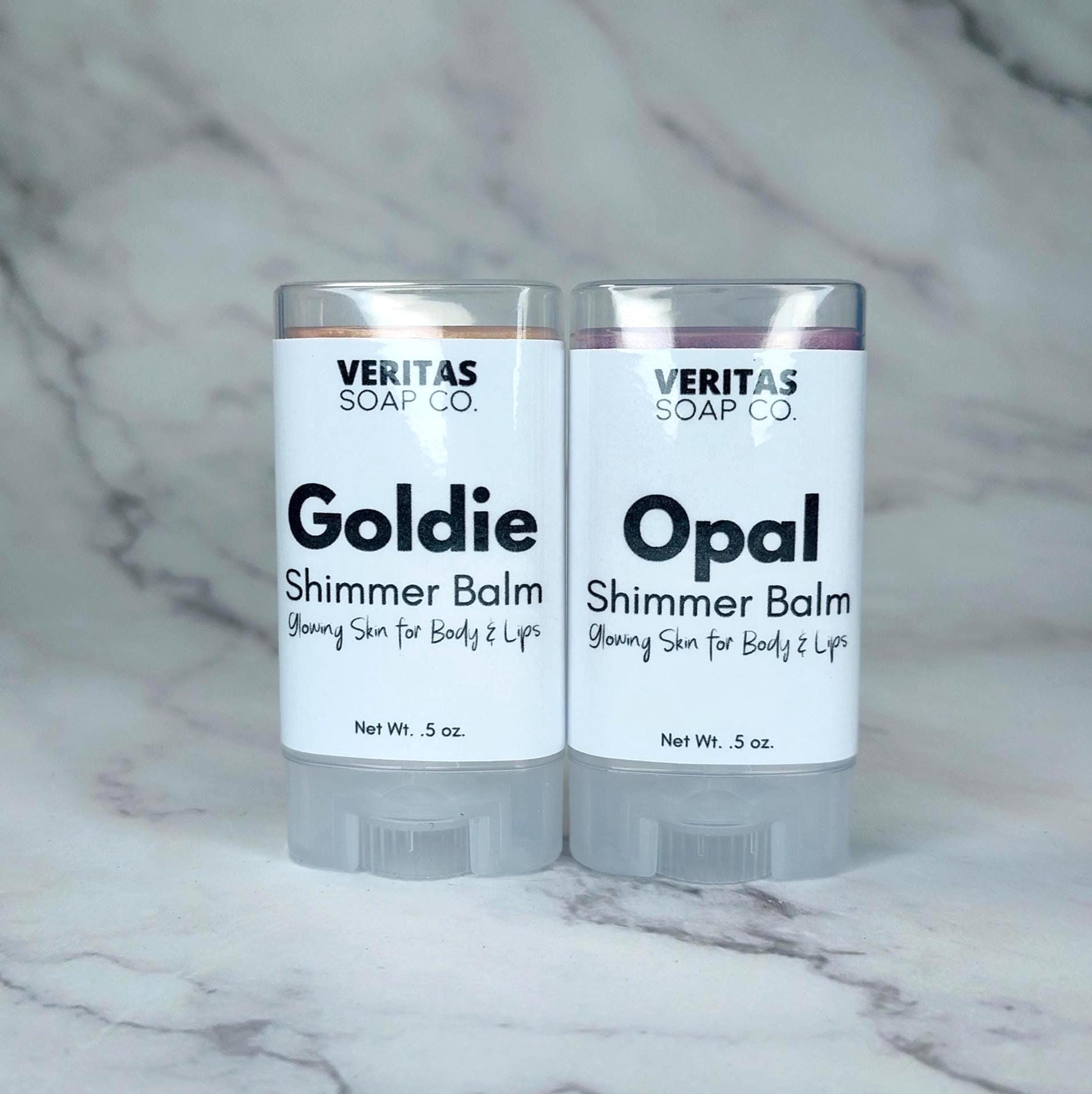 The OPAL Shimmer Balm adds a duochrome/unicorn color pop and the GOLDIE gives a beautiful golden highlight - each shade has it's own SPARKLE!