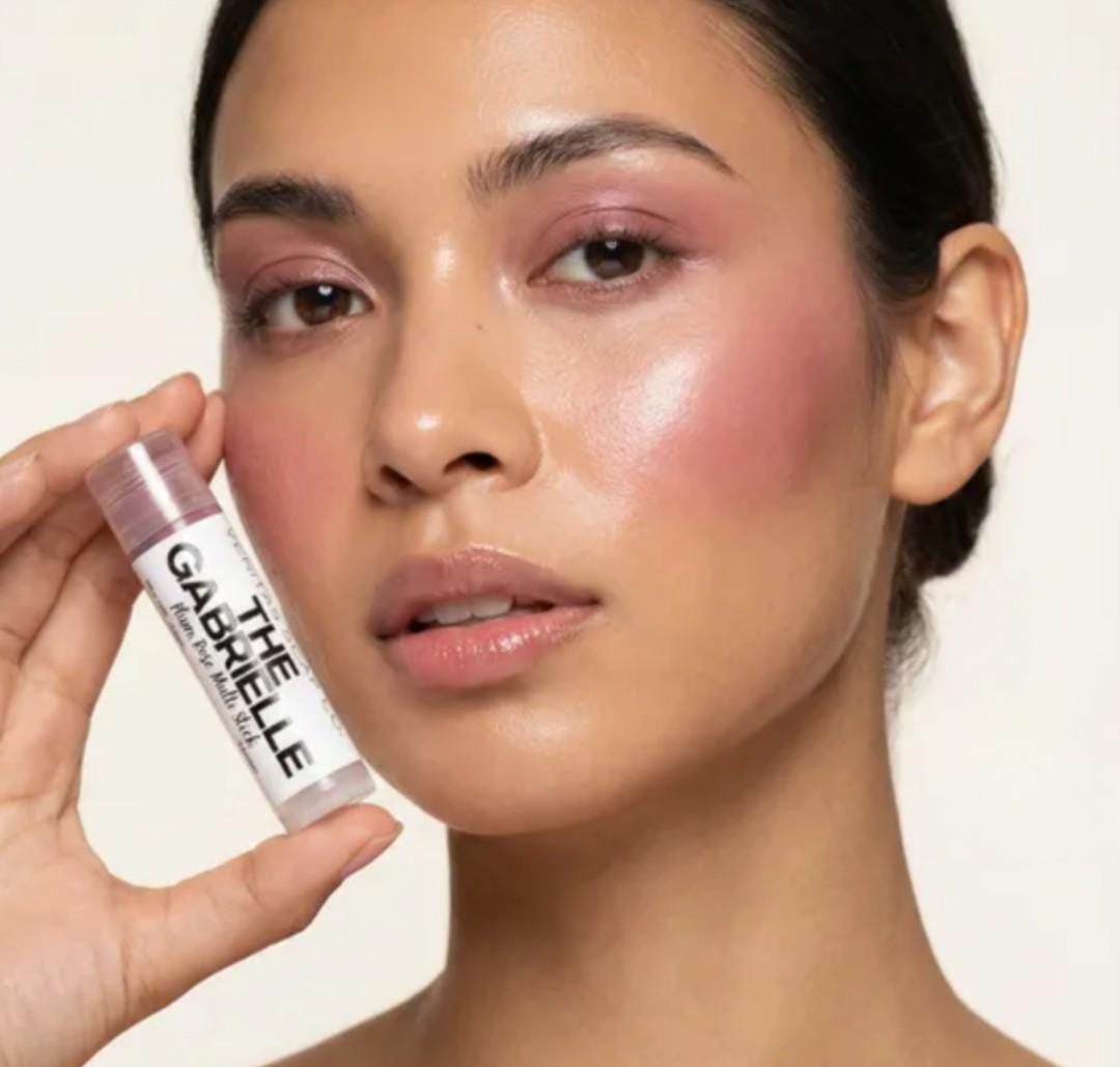 Meet THE GABRIELLE Multi Stick — a soft, Sheer Plum/Mauve Rose that delivers a delicate, romantic flush. This creamy, blendable stick glides on smoothly, giving cheeks, lips, and eyes a subtle wash of plum-rose color. Its sheer semi-sparkle formula makes it perfect for layering, allowing you to build intensity while keeping a natural, polished finish. This multi stick has no shimmer/sparkle.
