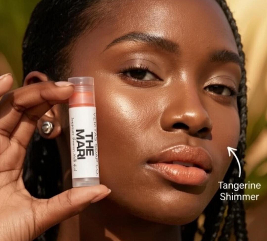 Tangerine Shimmer - THE MARI Multi Stick - Cream Makeup - Vegan Lipstick / Eye Gloss / Cream Blush