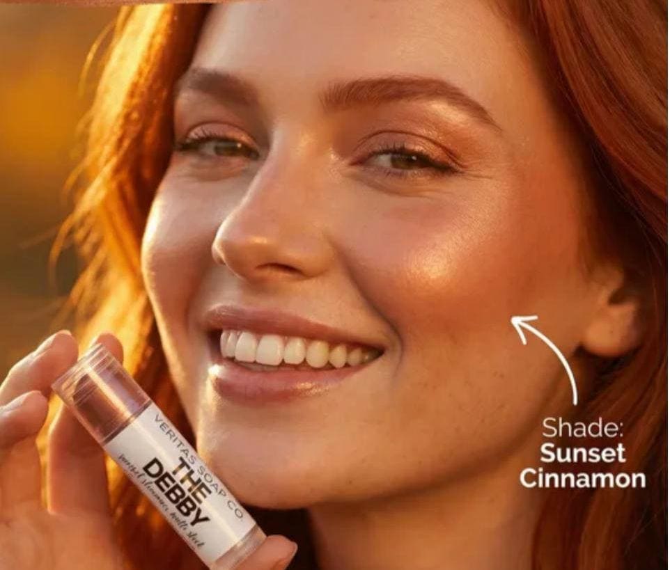 THE DEBBY Multi Stick is a cream color is your go-to glow for effortless warmth and radiance. This Sunset Cinnamon/Copper Shimmer cream color delivers a rich, sun-kissed warmth with a luminous copper sheen that catches the light in all the right ways. Inspired by golden hour skies and cozy autumn tones, THE DEBBY adds depth, dimension, and a natural glow to any look.