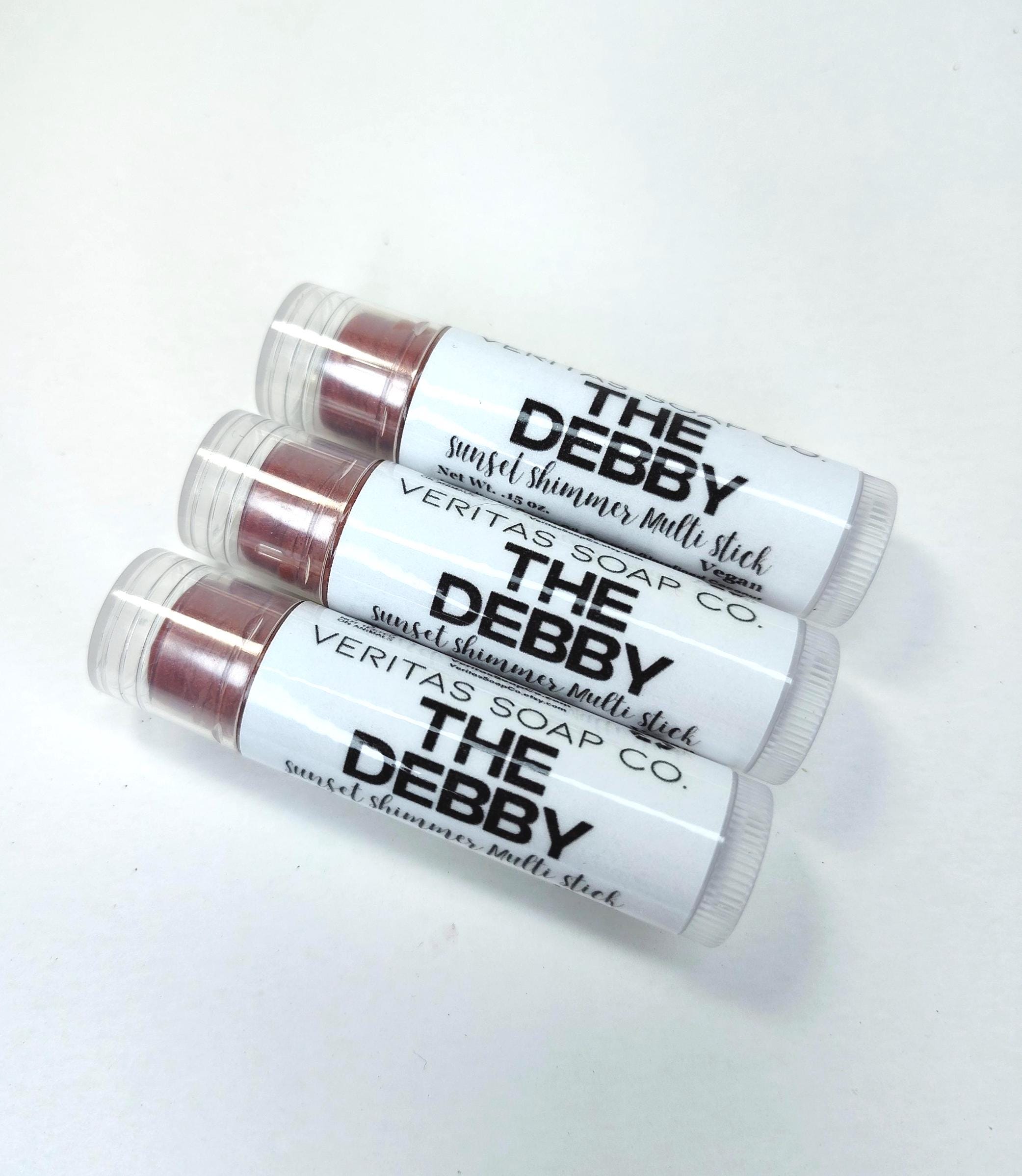 Whether you're creating a fresh everyday look or dialing up the drama for evening, THE DEBBY Multi Stick makes it easy to glow on the go. Compact, convenient, and beautifully versatile — this is the warm shimmer your makeup bag has been waiting for. Clean beauty. Confident color.