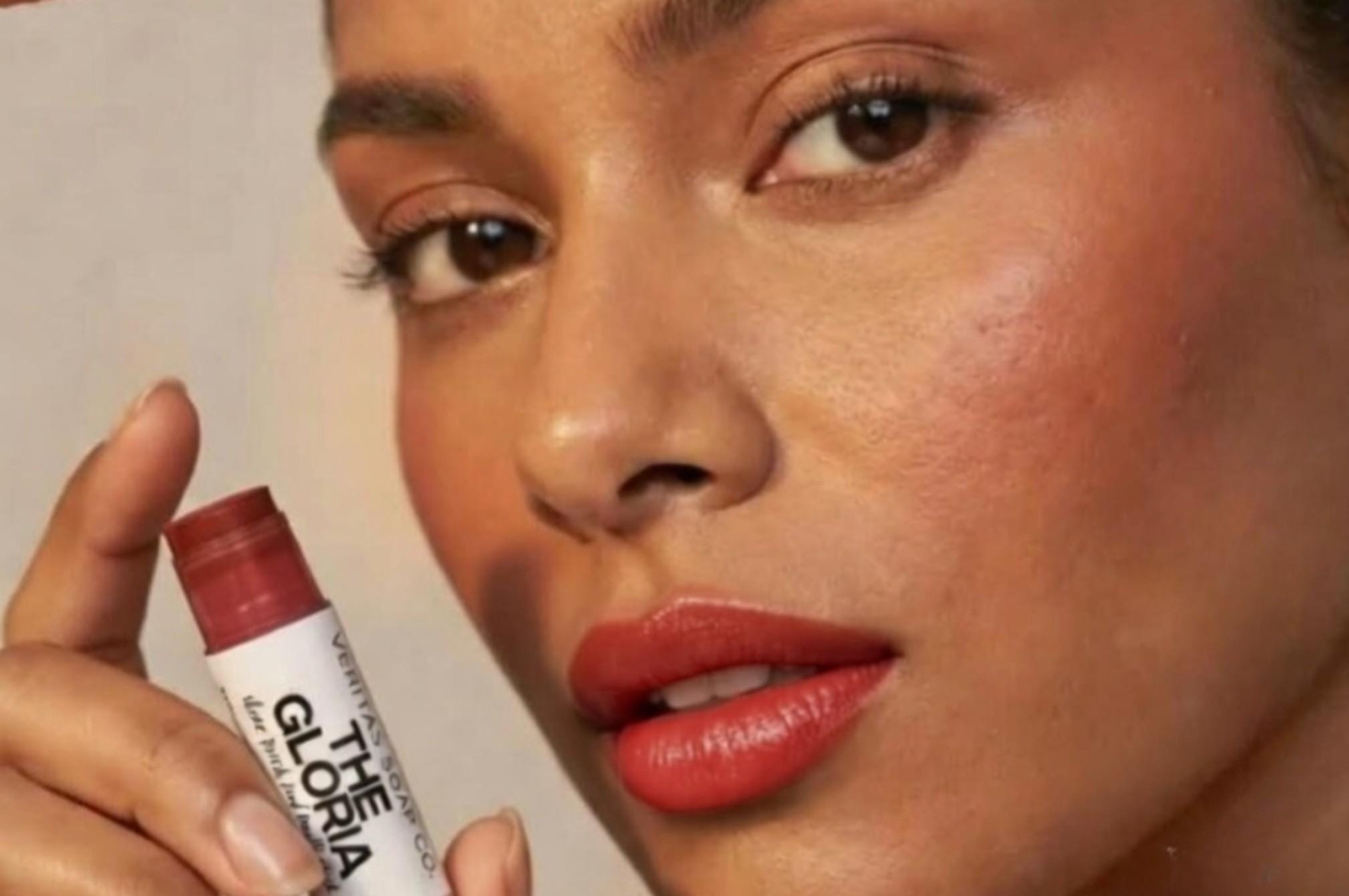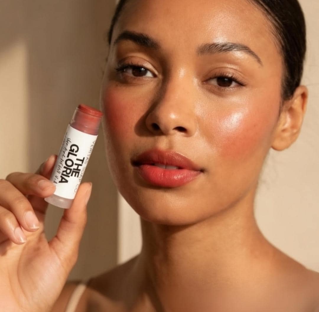 THE GLORIA Multi Stick is a sheer, dark Brick Red cream color that will leave your skin moisturized for hours after you apply! This color has NO SHIMMER/SPARKLE. Warmth with a whisper of bold. This sheer color is a softened brick red with warm terracotta undertones — rich in tone, yet beautifully lightweight on the skin. It delivers that classic red warmth without the heaviness, giving you a natural, lived-in flush that feels effortless and modern.