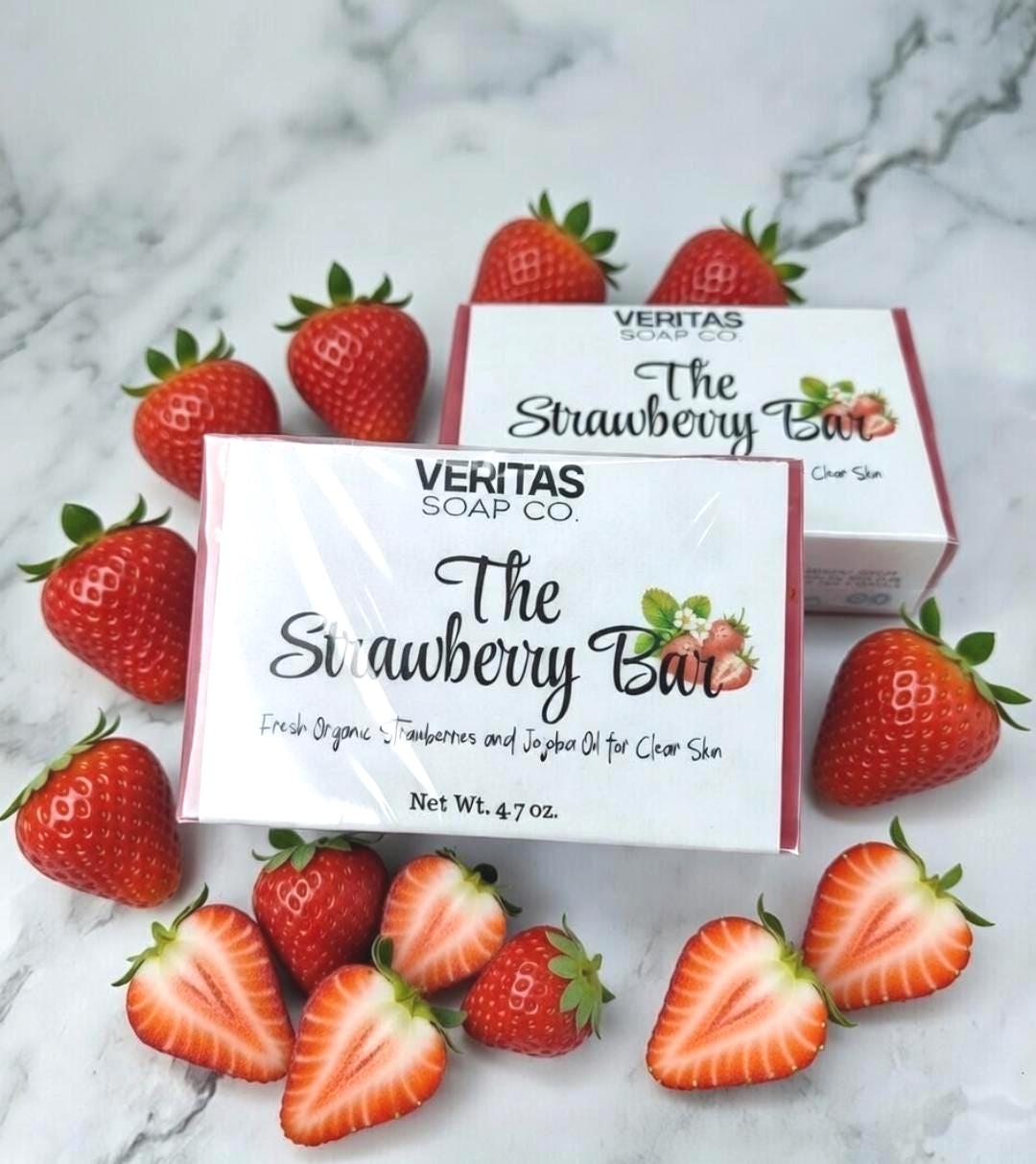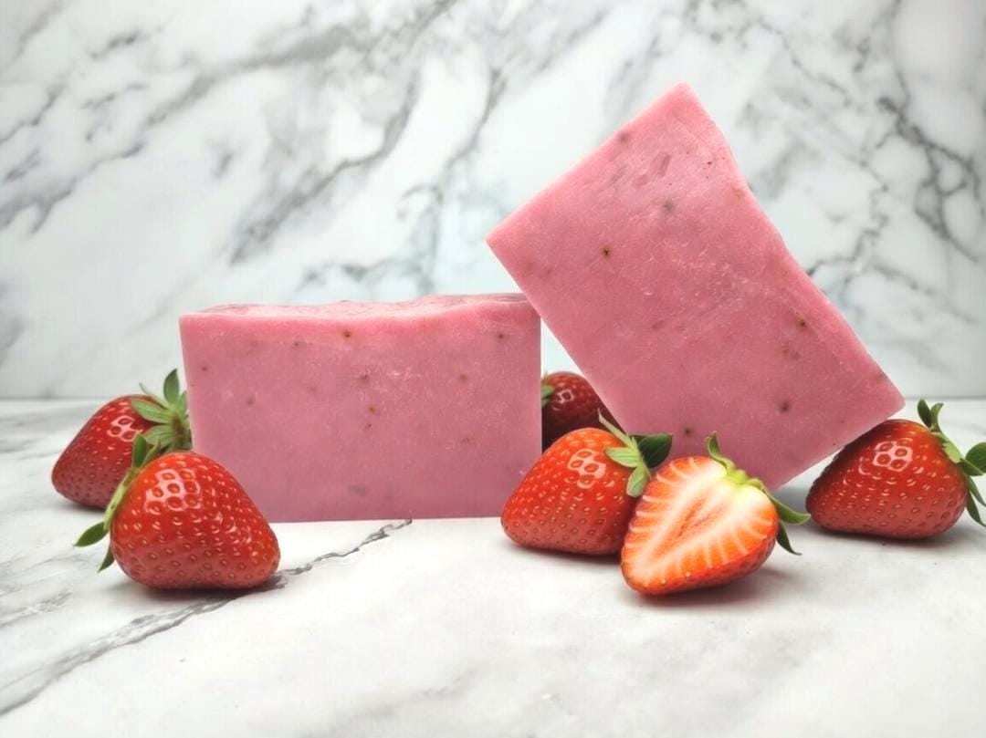 Strawberry Soap - THE STRAWBERRY BAR - Organic Shea Butter & Jojoba Oil Soap – Handmade Natural Moisturizing Soap, Fresh Fruit Skincare