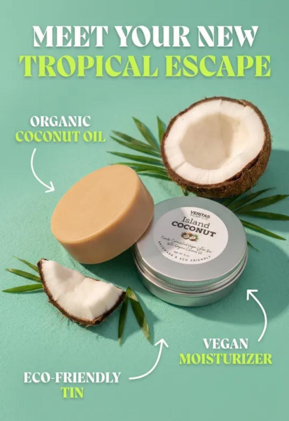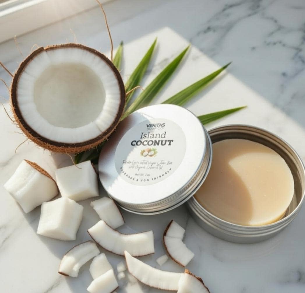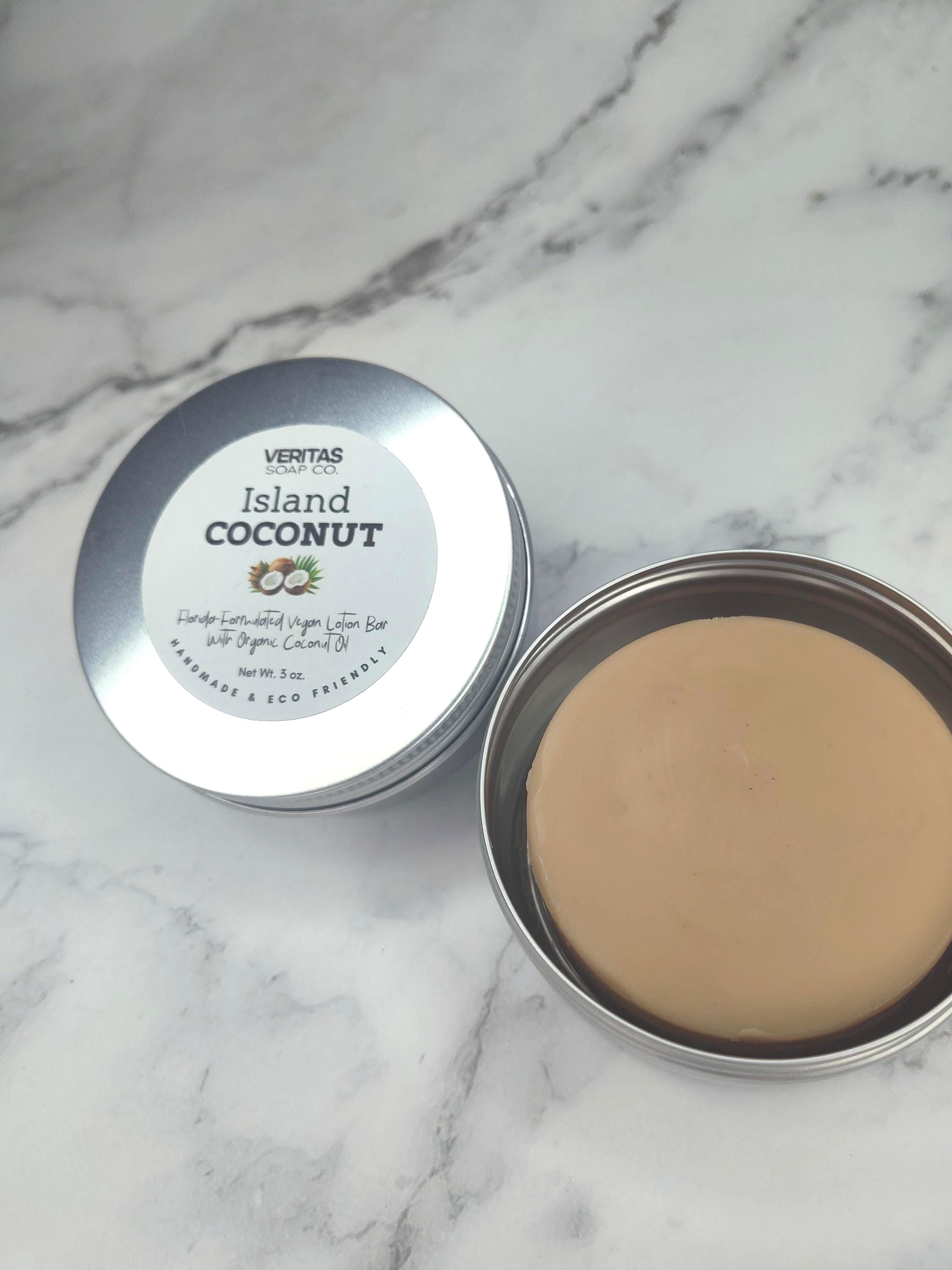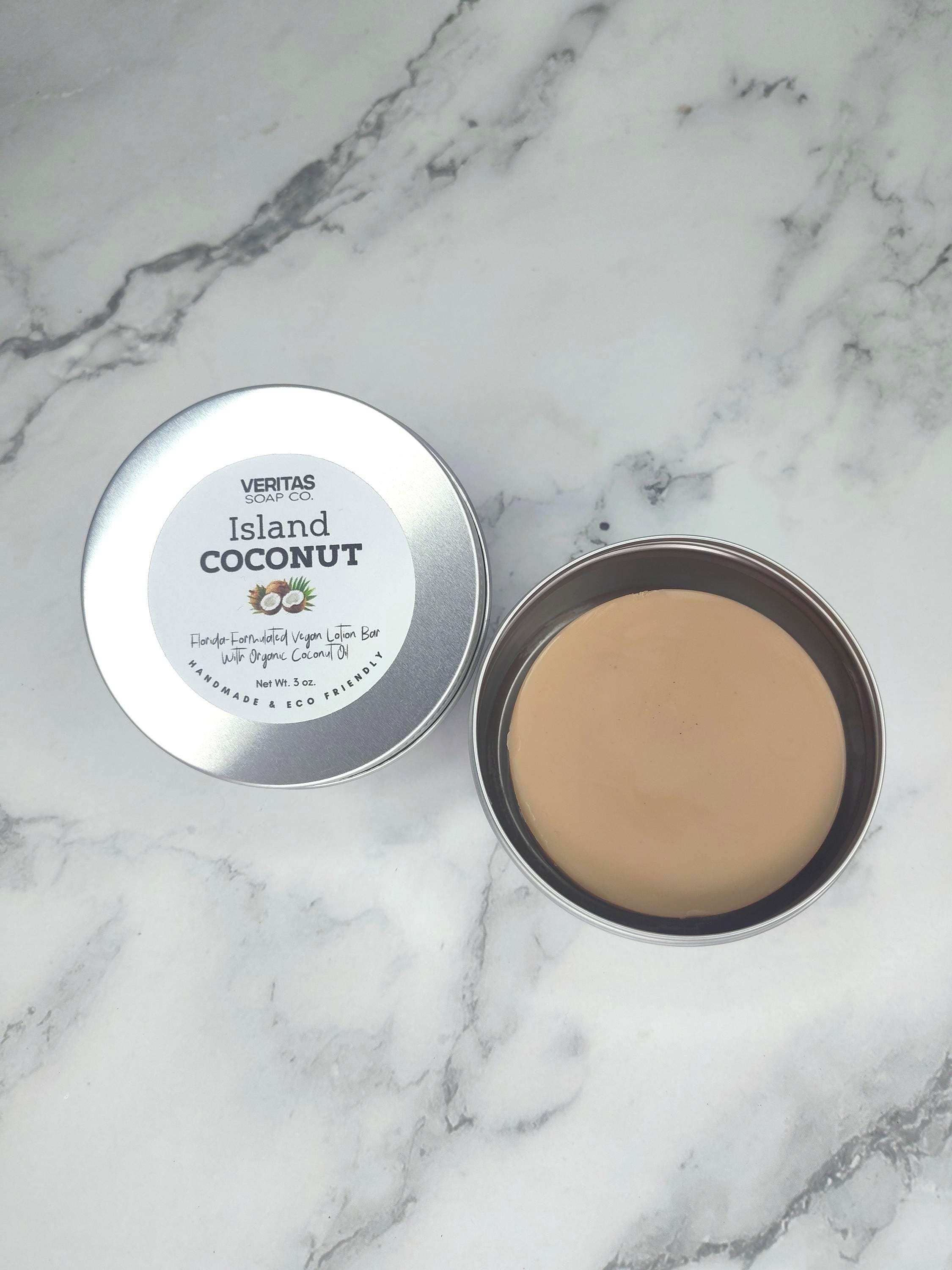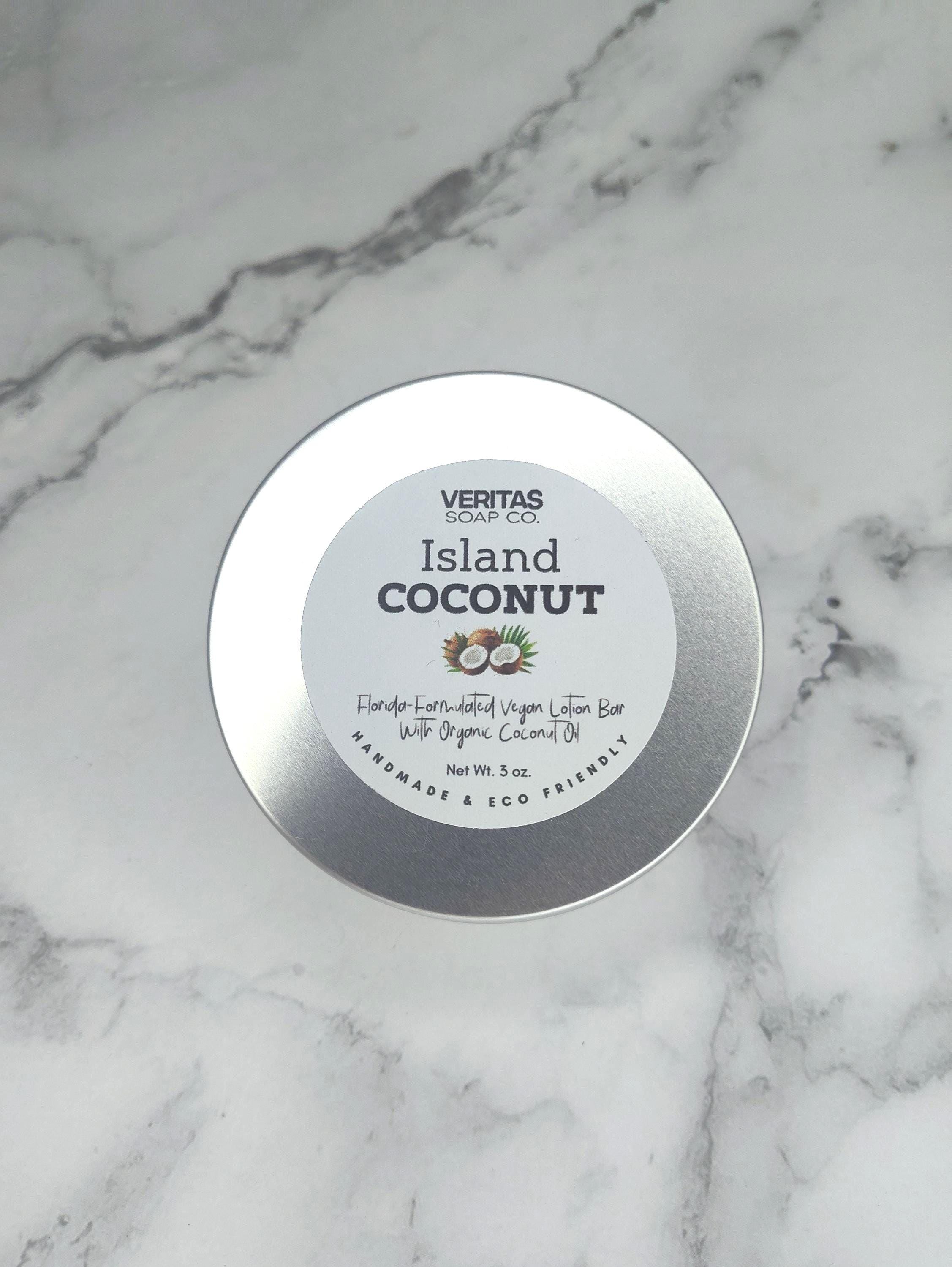 ISLAND COCONUT Lotion Bar - Florida-Formulated Lotion Bar – 3oz – Vegan Moisturizer with Organic Unrefined Coconut Oil in Metal Tin