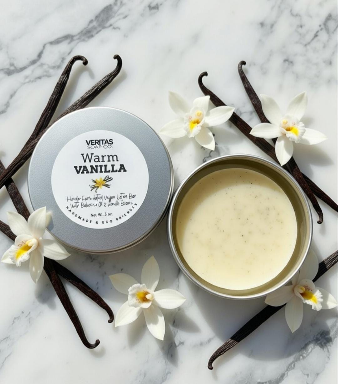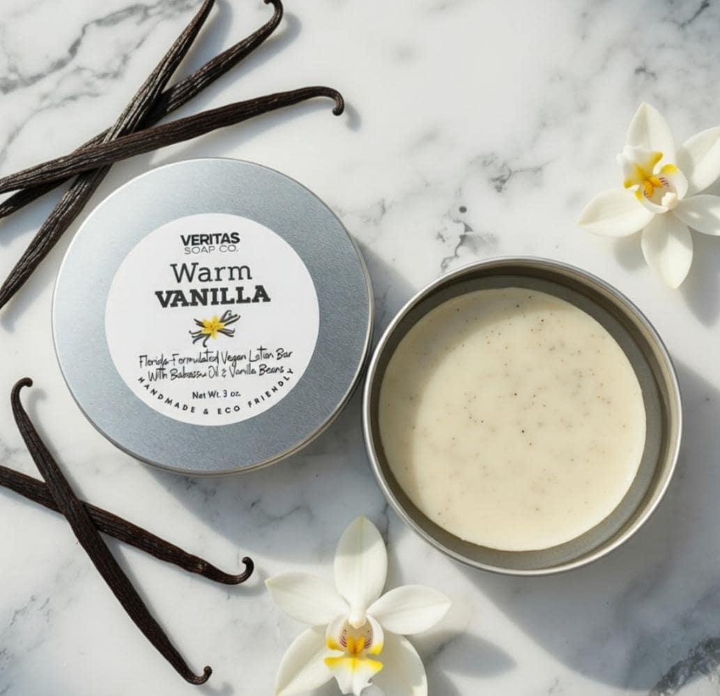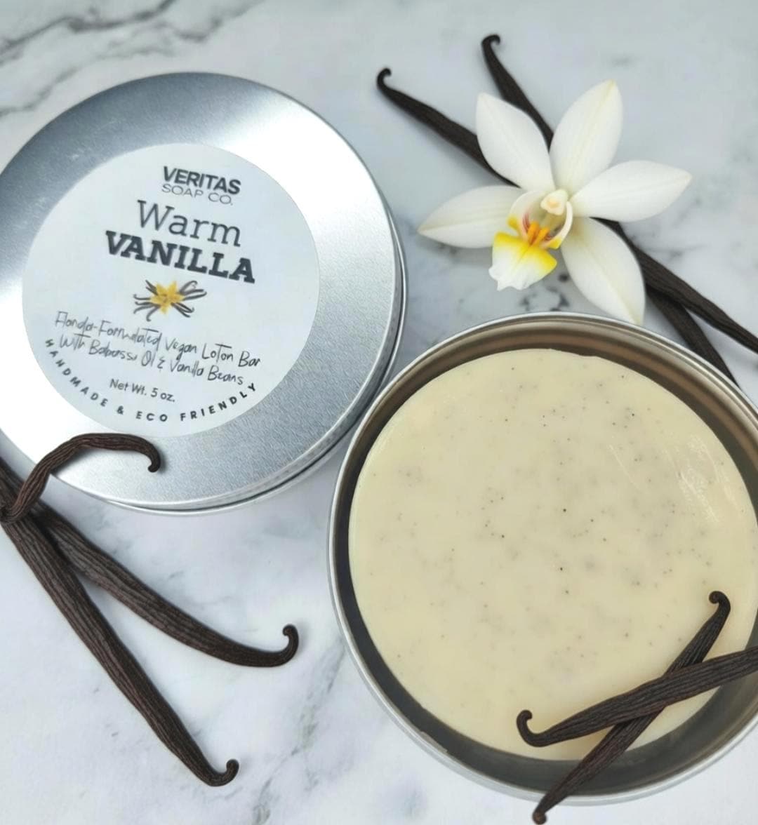 WARM VANILLA Lotion Bar - Florida-Formulated Lotion Bar – 3oz – Vegan Moisturizer made with Fresh Organic Vanilla Beans in Metal Tin