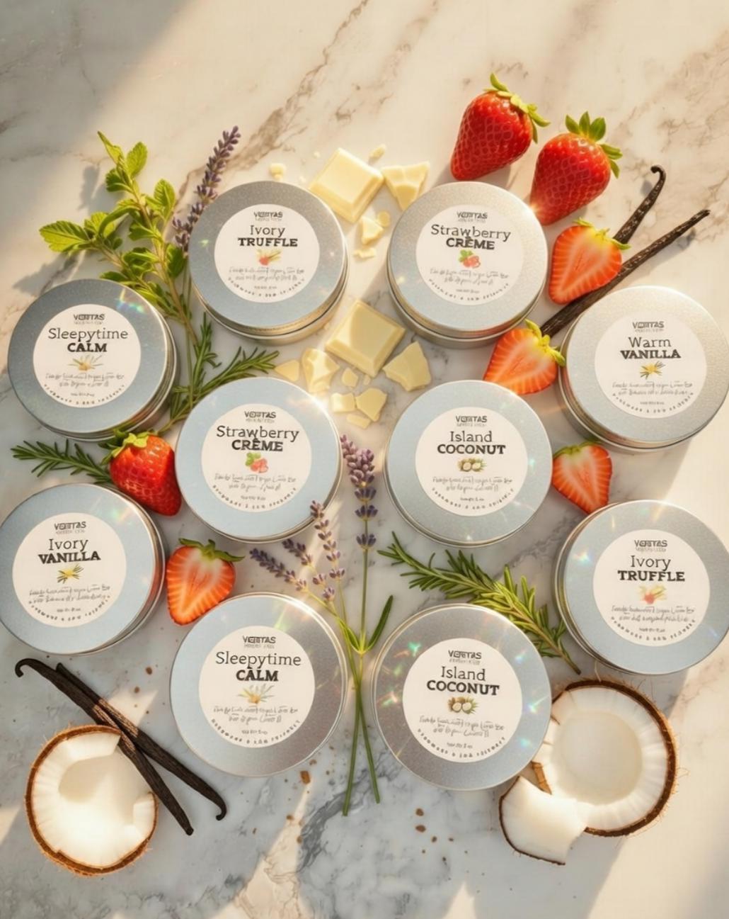 Ingredients: Cacao Butter, Shea Butter, Organic Babassu Oil, Candelilla Wax, Stearic Acid, Cetyl Alcohol, Essential Oil, Natural Fragrance Oil, Fresh Organic Vanilla Beans.