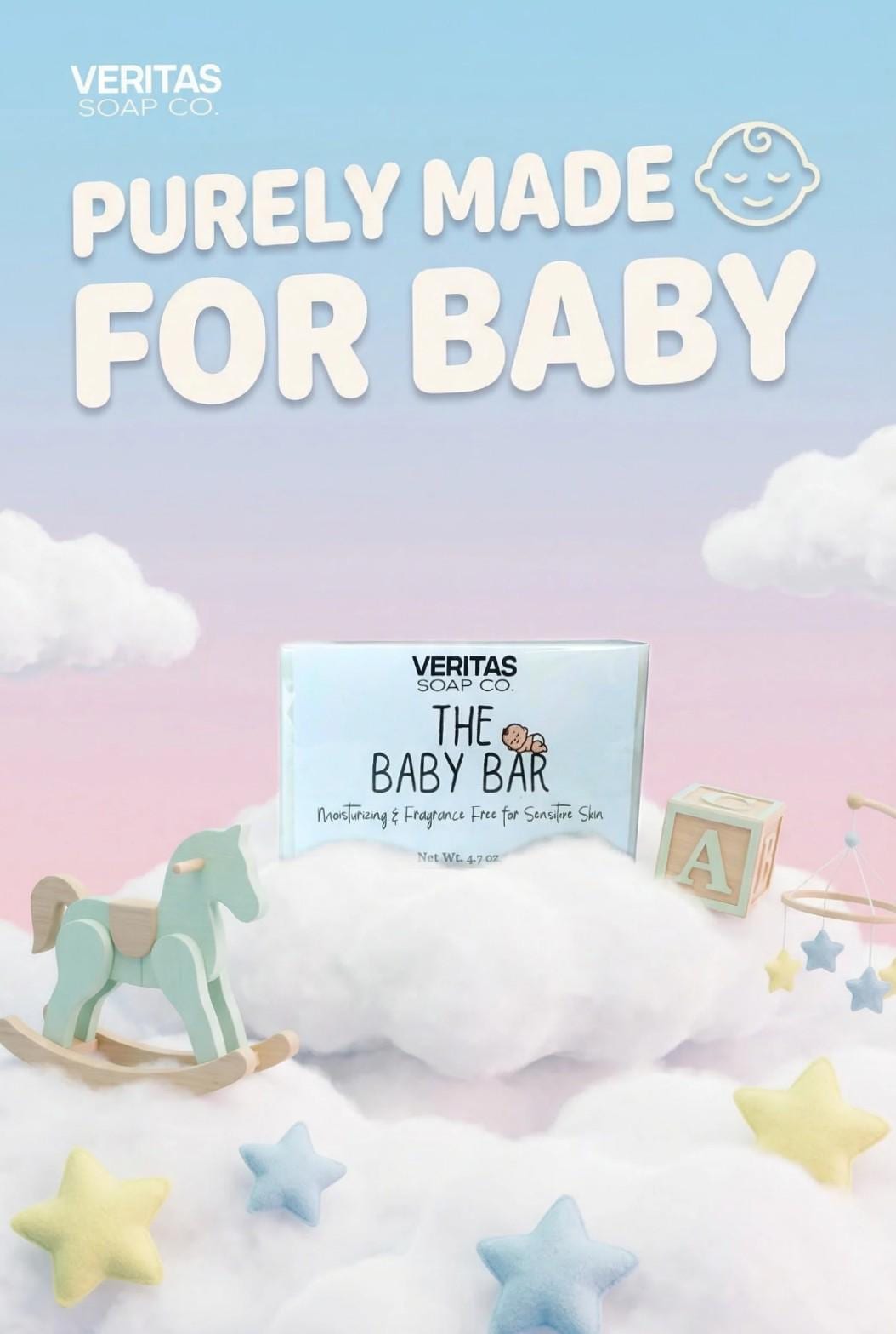 Fragrance Free Baby Soap - THE BABY BAR - Organic Olive, Apricot, Avocado & Castor Oil | Gentle Natural Soap for Sensitive Skin | Unscented