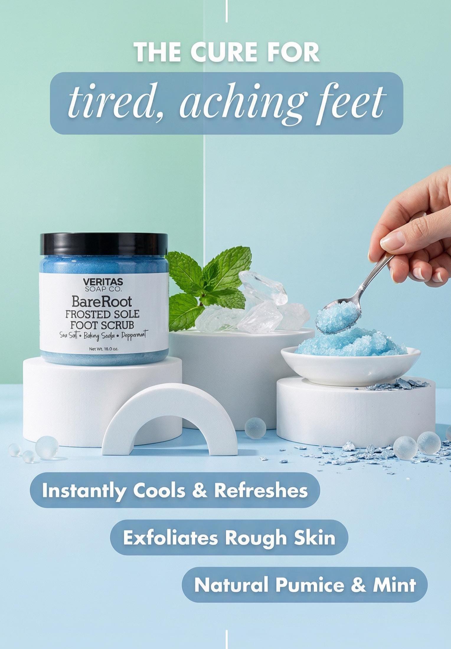 BareRoot FROSTED SOLE Foot Scrub – Peppermint, Tea Tree & Menthol | Natural Foot Care| Cooling Scrub | Baking Soda | Pumice | Oil-to-Milk