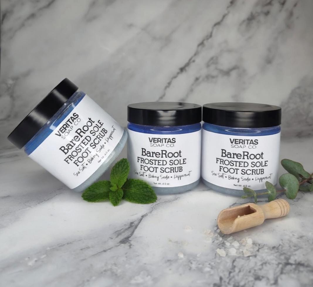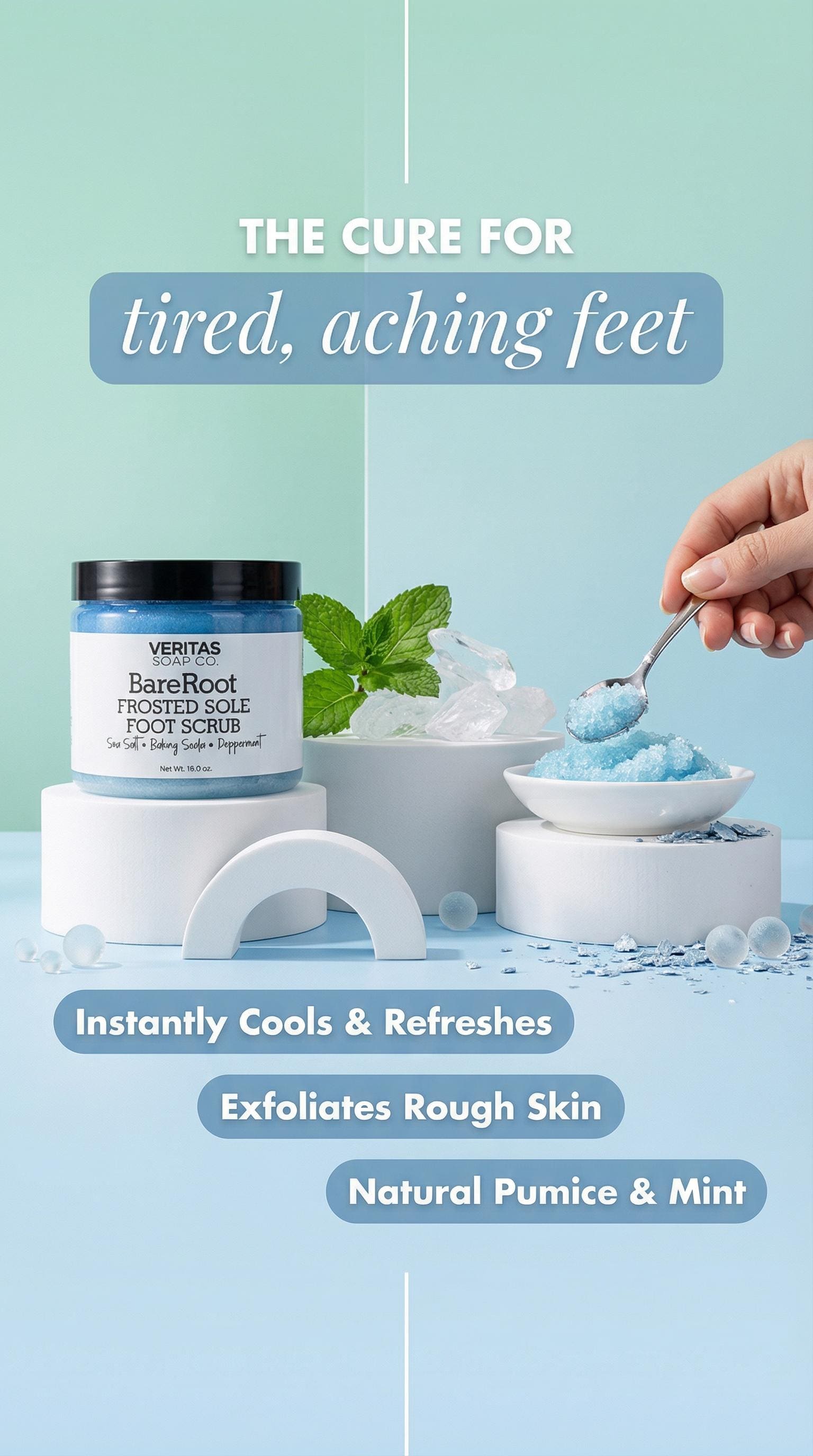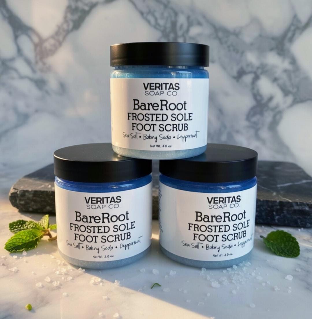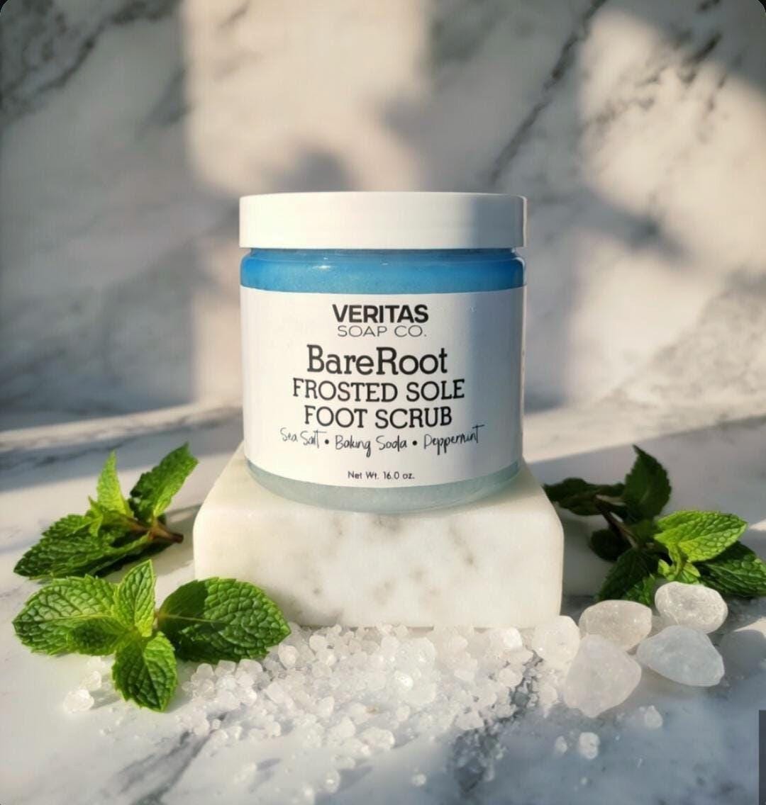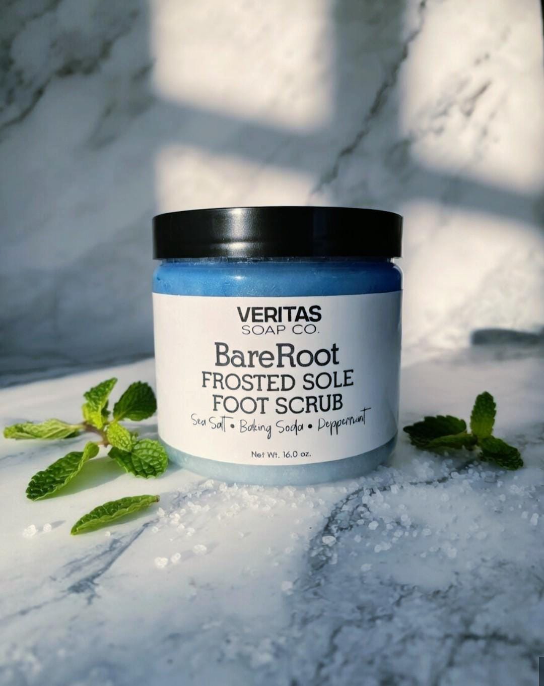 BareRoot FROSTED SOLE Foot Scrub – Peppermint, Tea Tree & Menthol | Natural Foot Care| Cooling Scrub | Baking Soda | Pumice | Oil-to-Milk