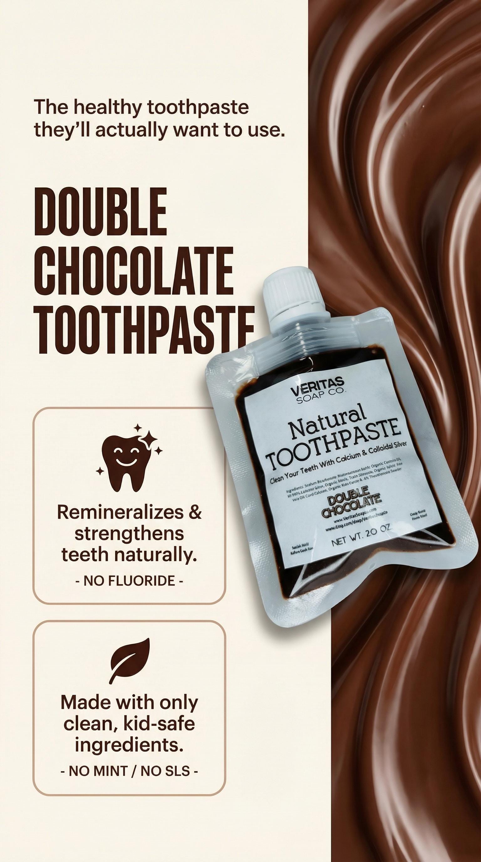 Check out our KIDS (NO MINT) Remineralizing Toothpaste now in DOUBLE CHOCOLATE!!