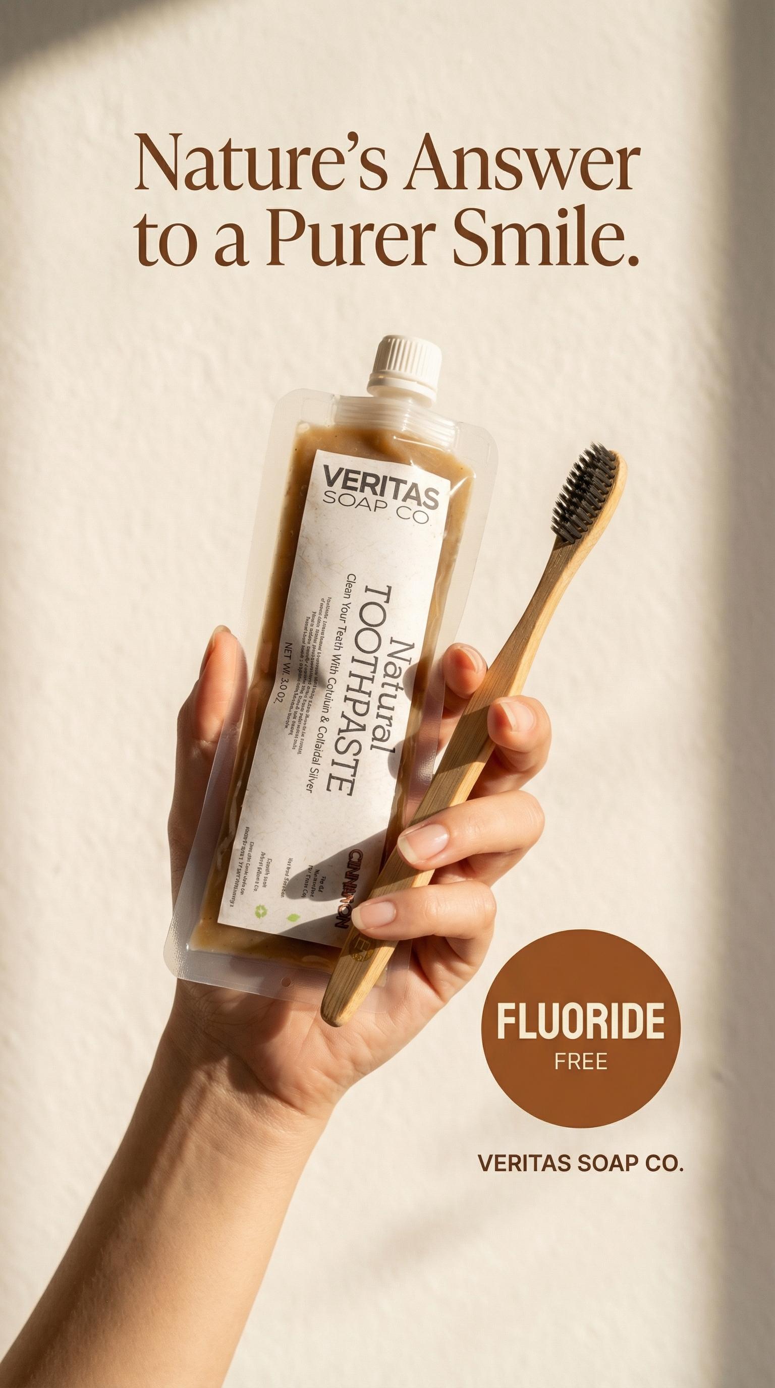 Veritas Soap Co.'s NEW Toothpaste is formulated with beneficial ingredients such as Organic Cinnamon, Baking Soda, Food Grade Diatomaceous Earth, Calcium Carbonate, 99.999% Colloidal Silver, Organic Coconut Oil & Aloe Vera Oil.