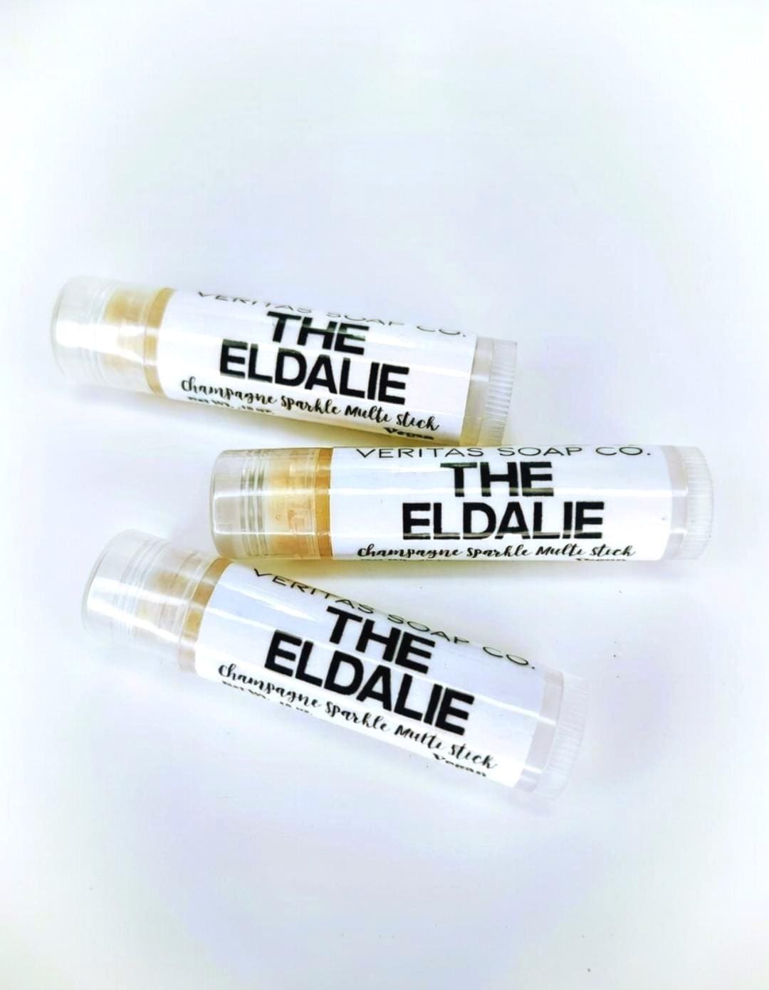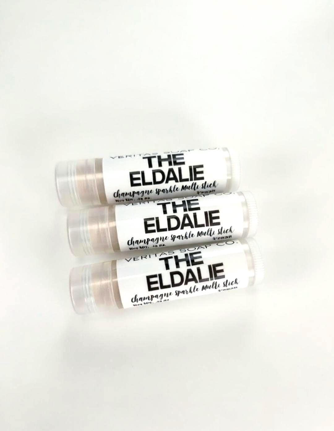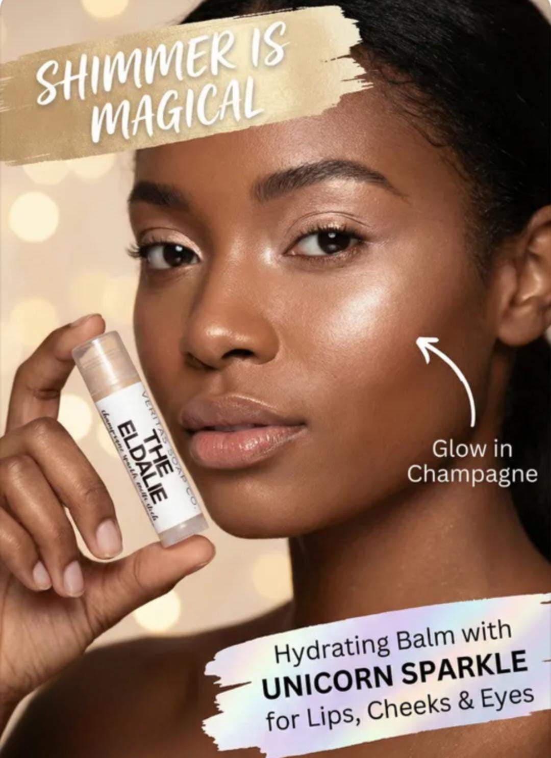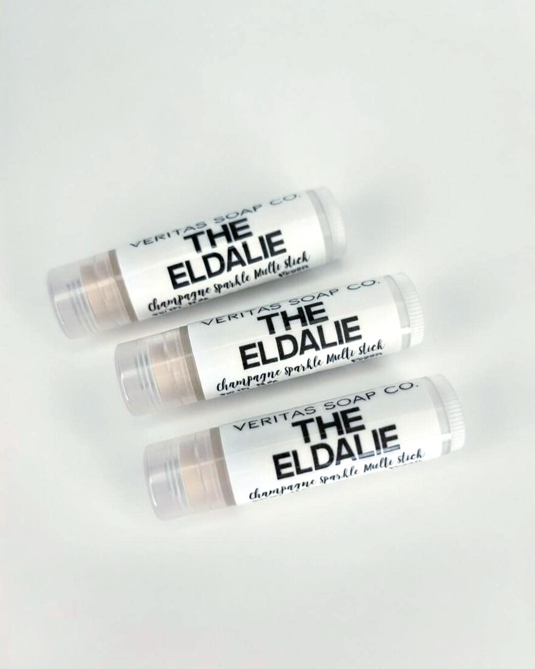 THE ELDALIE Multi Stick is a barely there (but still noticeable) Champagne Shimmer with a slight Unicorn Sparkle is for those who love a smooth balm with a semi shimmer/sparkle & no pigment. You can wear this Multi Stick as a Lip Shimmer by itself, with a Lip Liner, as a Cheek Highlighter or as a Cream Eye Gloss. Magical!!
