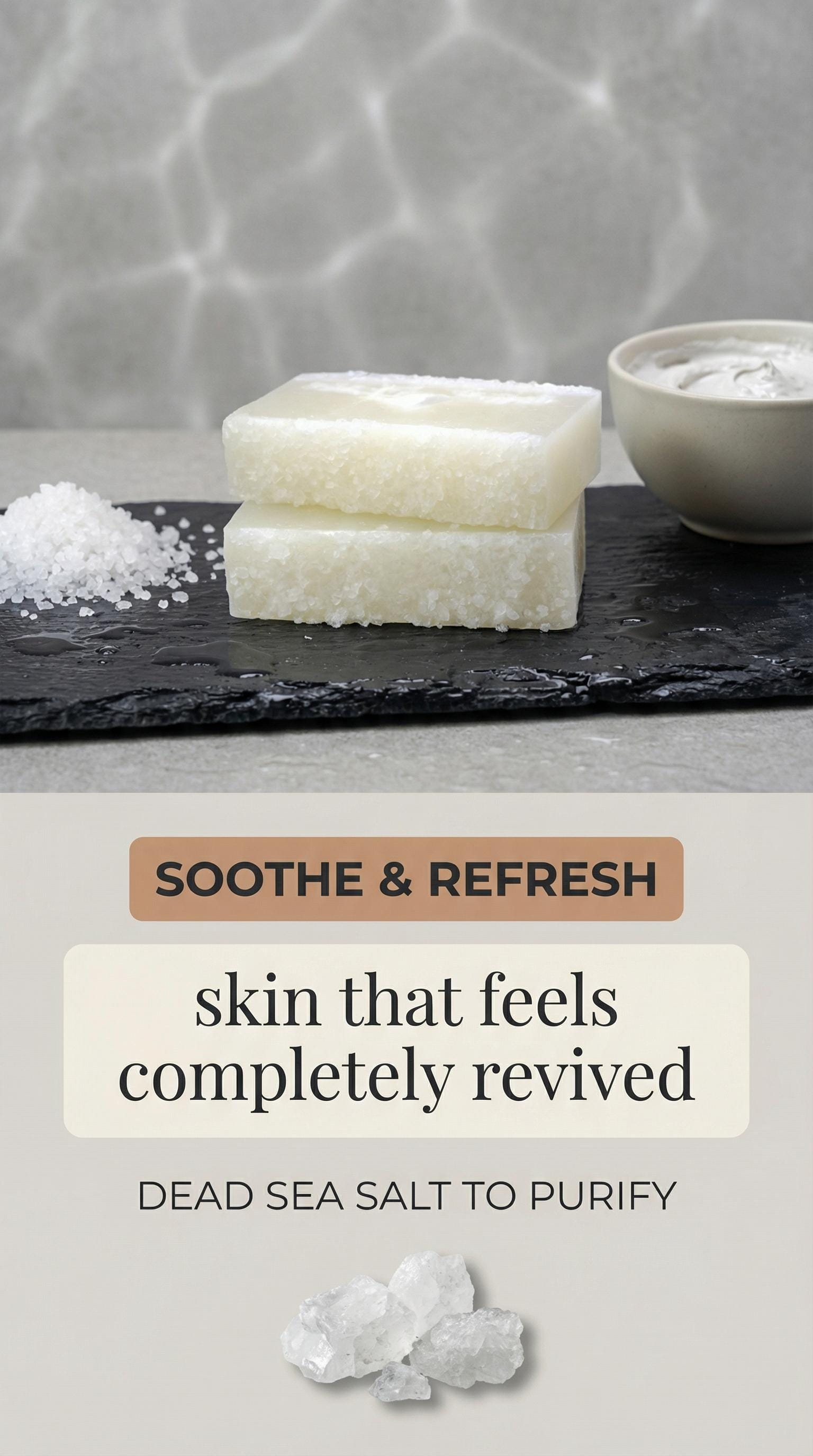 Salt Soap - THE SALT BAR - Dead Sea Salt & Kaolin Clay for Soft Skin | Vegan | Soothe | Refresh | Artisan Soap | Face Soap | Acne