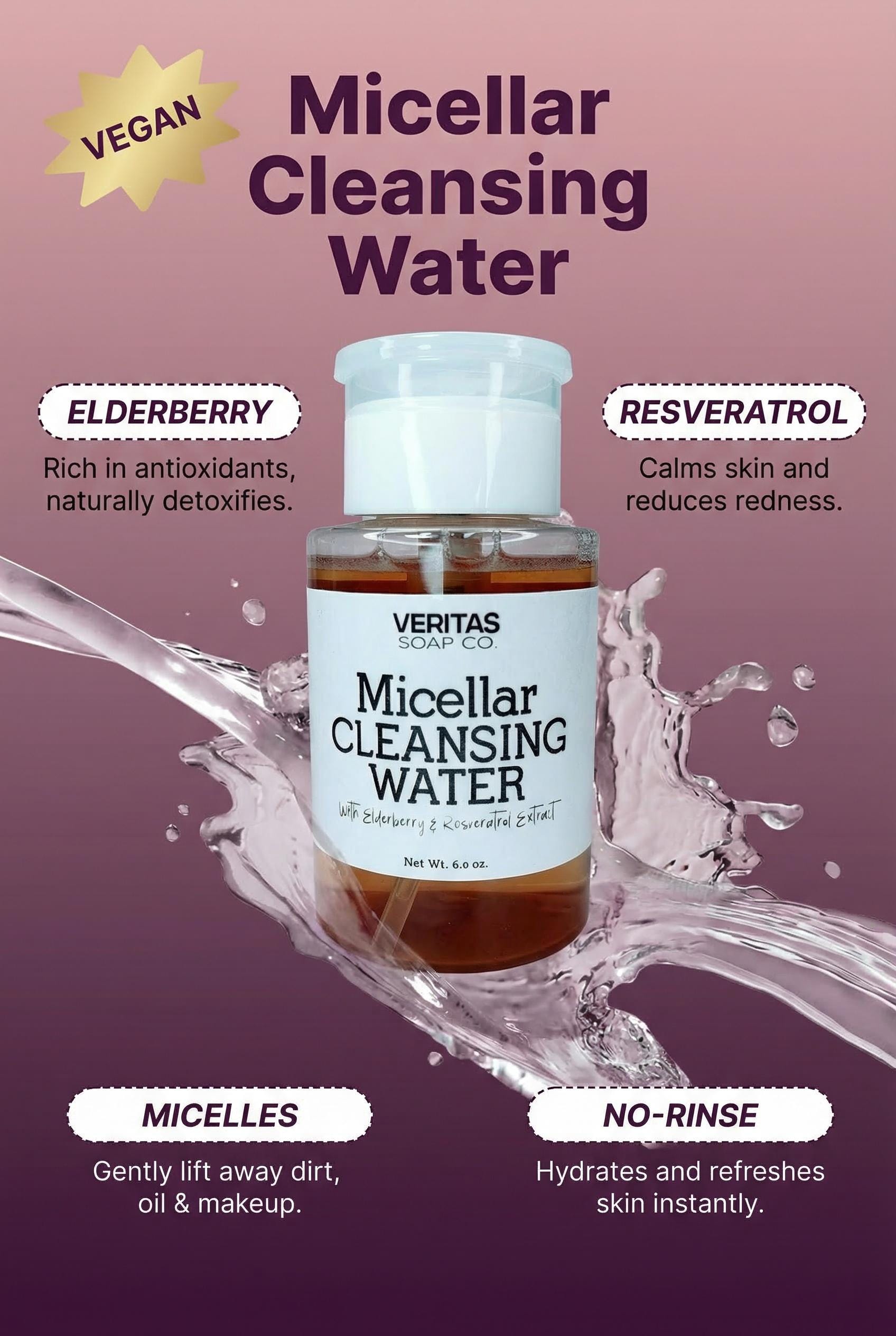 Elderberry Resveratrol Micellar Water | Vegan No-Rinse Cleanser