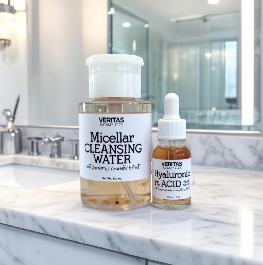 (1) .5 oz. Hyaluronic Acid Facial Serum + (1) 6.0 oz. Micellar Water