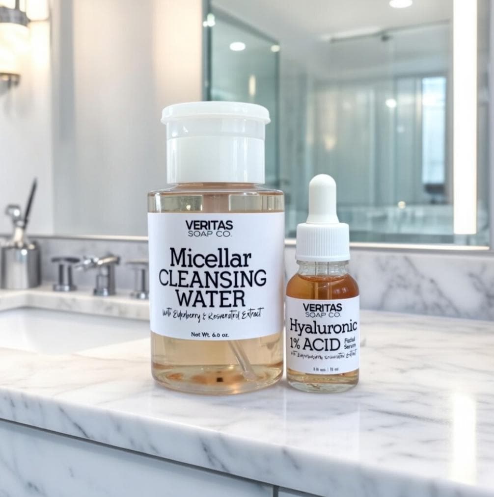 Hyaluronic Acid Serum & Micellar Water Duo, Elderberry Resveratrol, Vegan